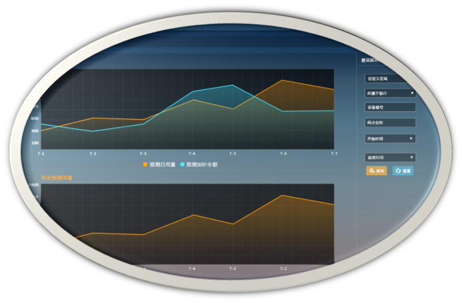 預測加鈔計劃:通過參數配置(設備基礎參數、影響參數)、預測模型,一鍵生成設備T+0~T+5預測加鈔計劃;