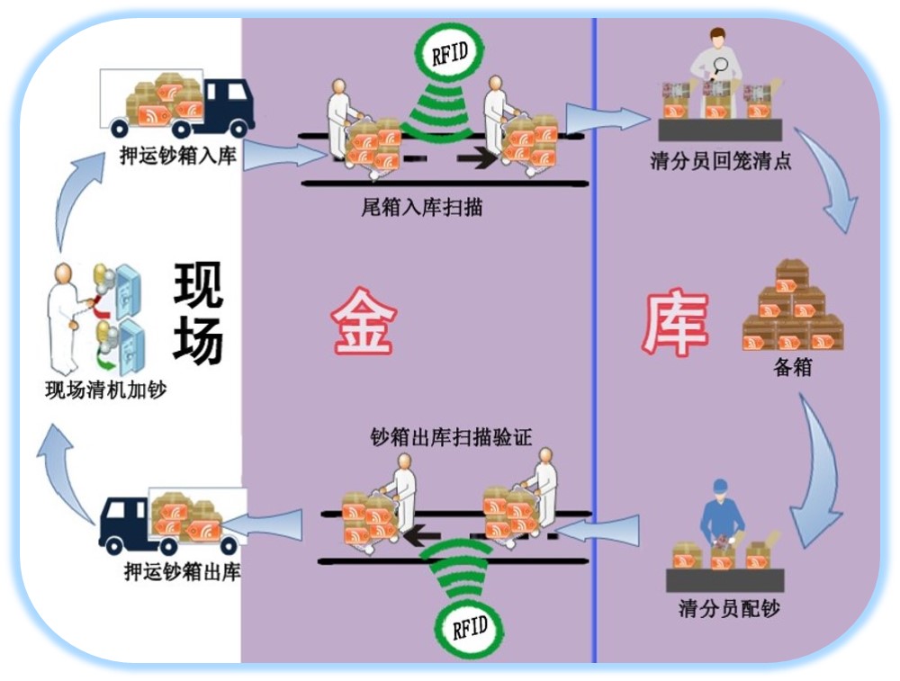 批量出入:通過RFID技術實現鈔箱批量出入庫及無紙化交接